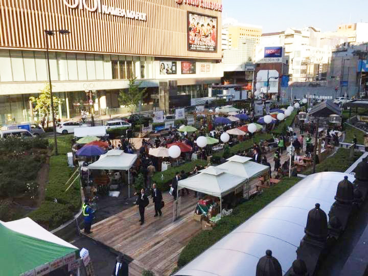 大阪市による「なんば広場(仮称)における歩行者利便増進施設等のための道路占用者の公募」に採択された「なんば広場マネジメント法人設立準備委員会(以下、準備委員会)」が、なんば広場の管理運営を行っています。