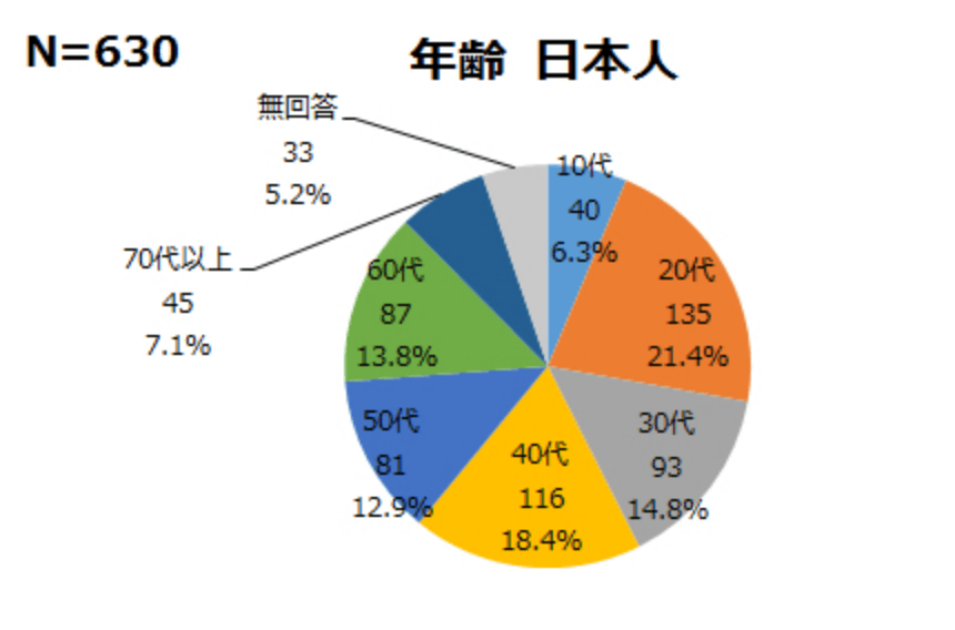 - 日本人は各年代、同等の割合で回答を得ている。