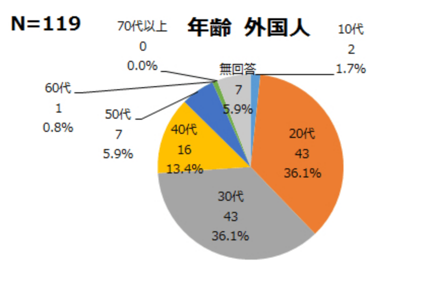 - 外国人は、20代、30代の回答が多い。