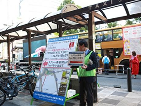 - タクシー乗降場を、仮設でパークス通り(新川通り)に一時移設。
