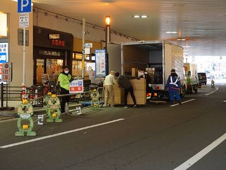 ①御堂筋の荷捌き状況