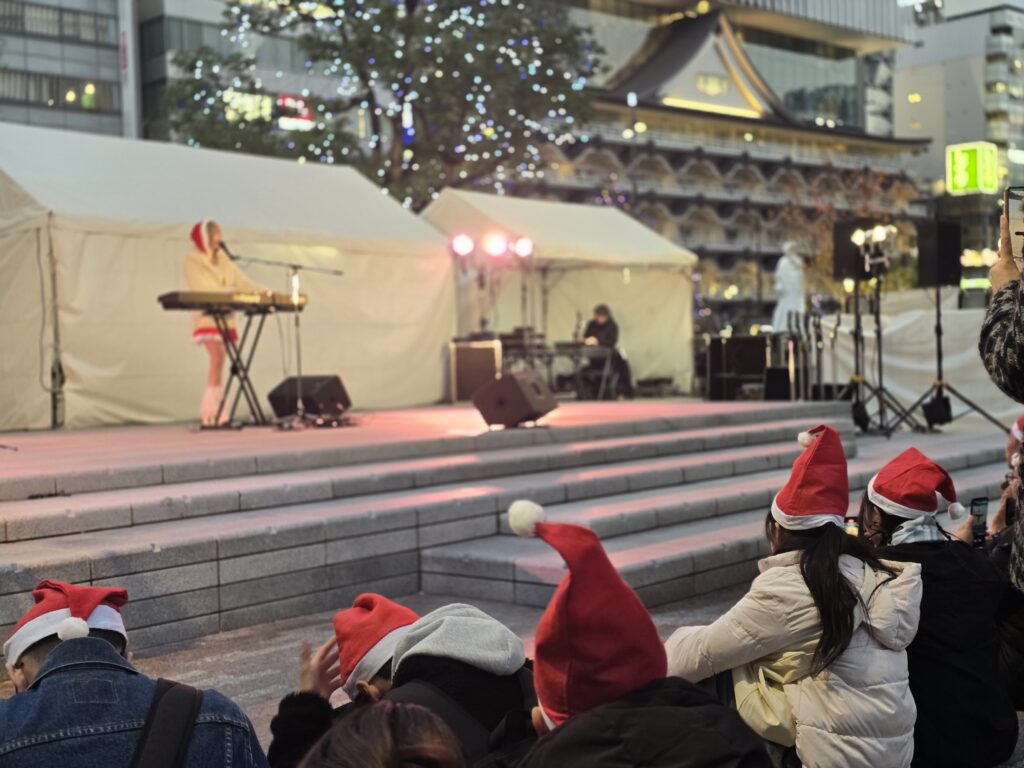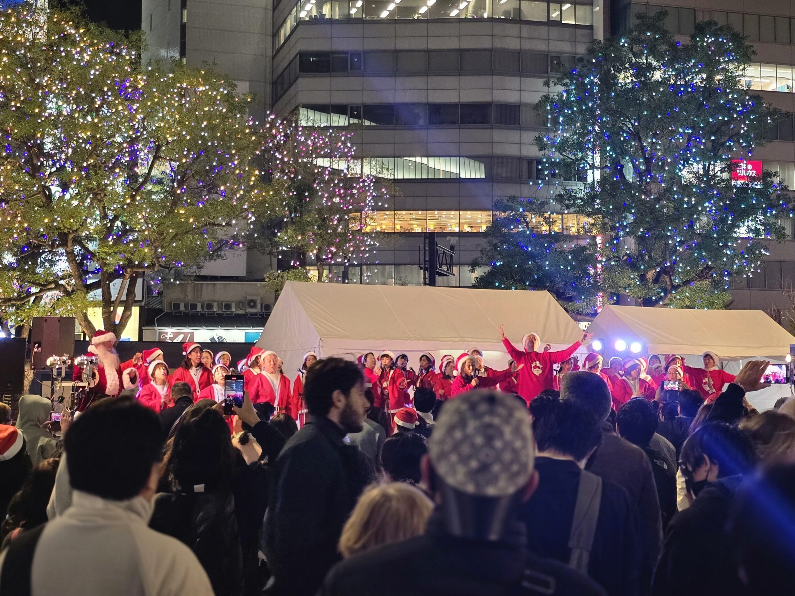 DJタイムでは最新の曲やヒット曲が流れ、キッズダンスショーは可愛く・カッコよく・元気いっぱいの素晴らしいステージでした。小出夏花さんの弾き語りでは、今回のサンタチャリティライブのために作曲された素敵なクリスマスソングを披露していただき、ゴスペルショーでは世代を超えて人気のクリスマスソングを会場の皆様も一緒になって歌い、心温まるひとときを共有しました。