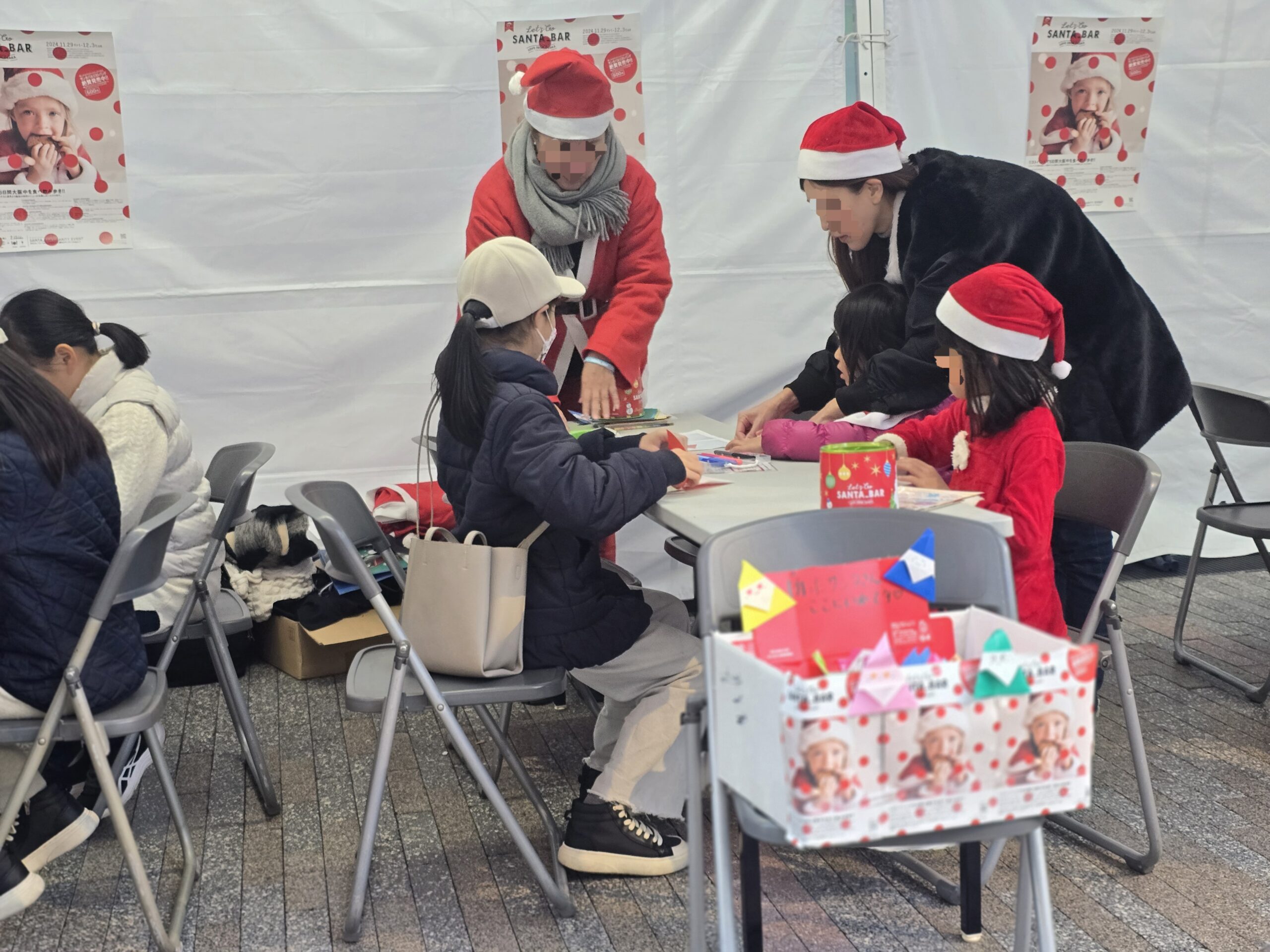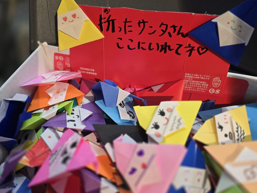 チャリティー募金ブースでは、多くの方々の温かいご支援をいただきました。ブースでは、観光でなんば広場を通られた海外の方も足を止めてくださり、病気と闘う子どもたちへ送る折り紙サンタを折って下さいました。皆さまの温かいお気持ちに感謝申し上げます。