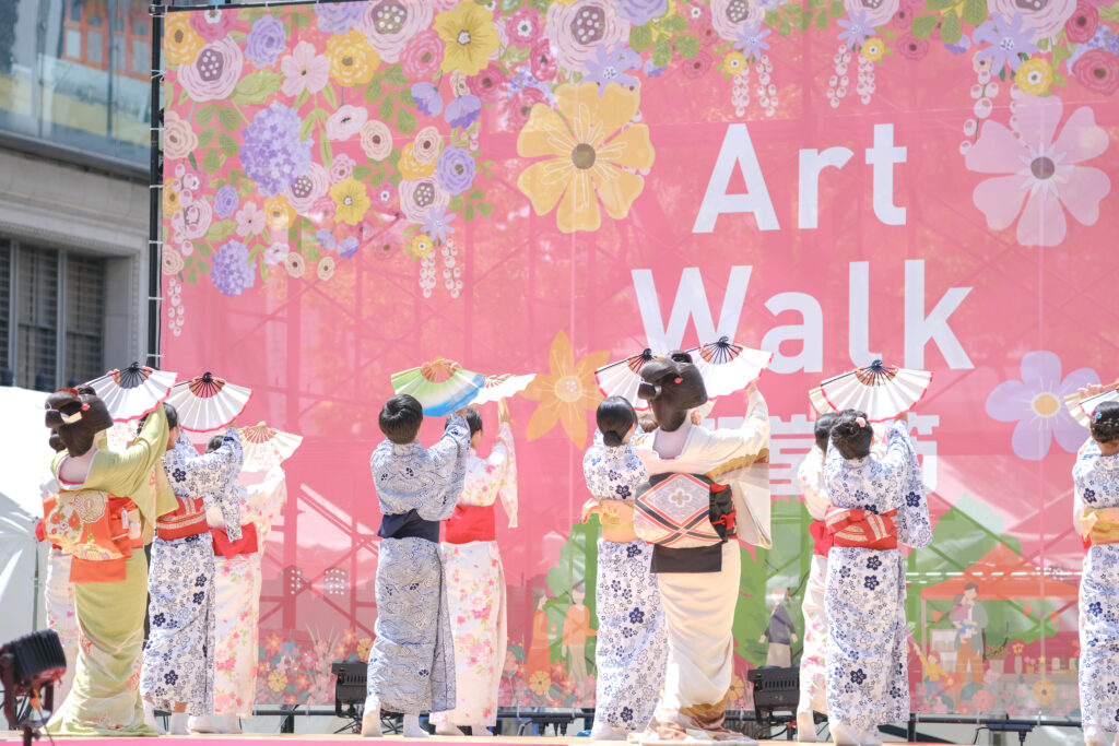 フラワーカーペットに囲まれたステージでは、多彩なパフォーマンスが繰り広げられました。「MIDOSUJI ARTファッションショー」「難波をどり会」「大阪の風」「青森ねぶた実演」など、各団体による個性豊かなパフォーマンスは、会場を大いに盛り上げました。