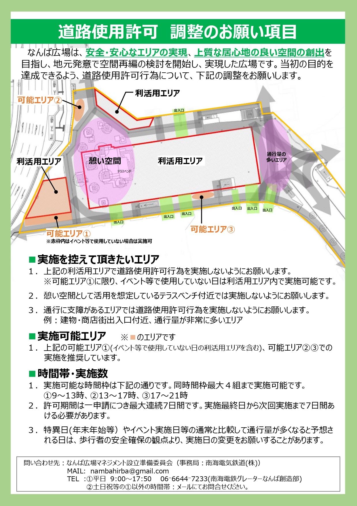 - 上記の利活用エリアで道路使用許可行為を実施しないようにお願いします。
